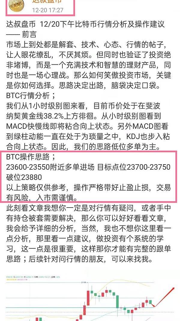 每次跟上达叔操作的币友都收获很大。达叔下午17点27分时根据技术面分析的出来的操作思路,关注达叔的朋友都会收到达叔的消息通知