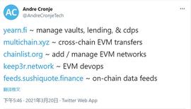 币信对话超级君:DeFi的暴涨来自于各种金融之间需求的摩擦:9月7日,在币信直播间进行的DeFi直播里,超级君表示:“DeFi的暴涨来自于各种金融之间需求的摩擦,其中一个典型就是借贷之间的摩擦,有借有贷,比如矿工买矿机,借钱买币等等。自Compound用代币发行之后有代币经济,于是大家可以对DeFi的各种项目进行估值,从信仰驱动变成了业务驱动。而DeFi标志性的发展不一定是Compound,我觉得是YFI,治理和分发的模式启迪了所有新项目,告诉它们如何长时间维持下去。而DeFi的市场搅动了之前中心化交易所的沉淀资金,这就是DeFi市场钱来的来源。”[2020/9/8]
