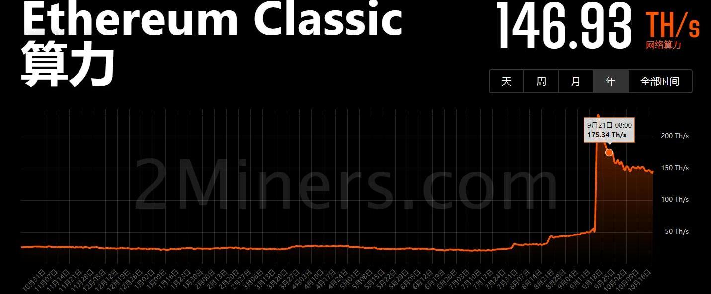 ETC算力变化数据来源:2minersETHPOW