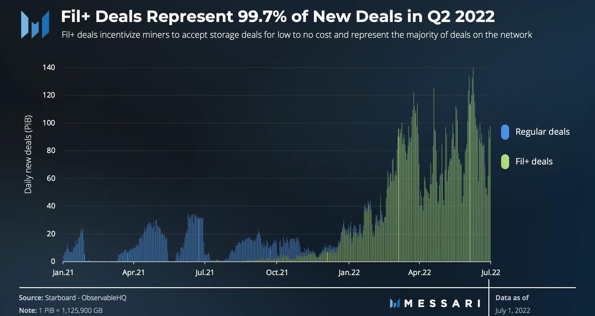 为了防止存储提供商对网络奖励的博弈并增加Filecoin上的有用存储容量,开发了FilecoinPlus激励计划。该计划通过增加他们赢得区块奖励的概率来激励存储提供商参与经过验证的数据的交易。为了争夺存储交易,存储供应商在竞争存储交易时会不断降低费用。这导致以很少甚至没有成本的方式提供存储。