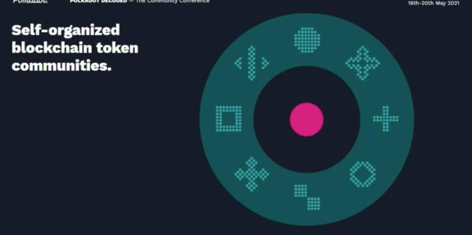 我觉得「自组织区块链代币社区」这个概念很有意思。因为它是互联网原生的概念,来自不同阶层、背景、来源和地区的人,围绕某个共同目标或者原则组织起来。这里的图表示了来自全球的不同人群围绕着波卡组织起来。平行链、Layer1区块链和智能合约