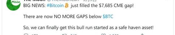 然而,这一说法并不总是应验。3月10日,在比特币现货“填补”了CME期货缺口后,推特上的大V预测牛市即将到来,但在接下来的几天里,币价将暴跌近4000美元。