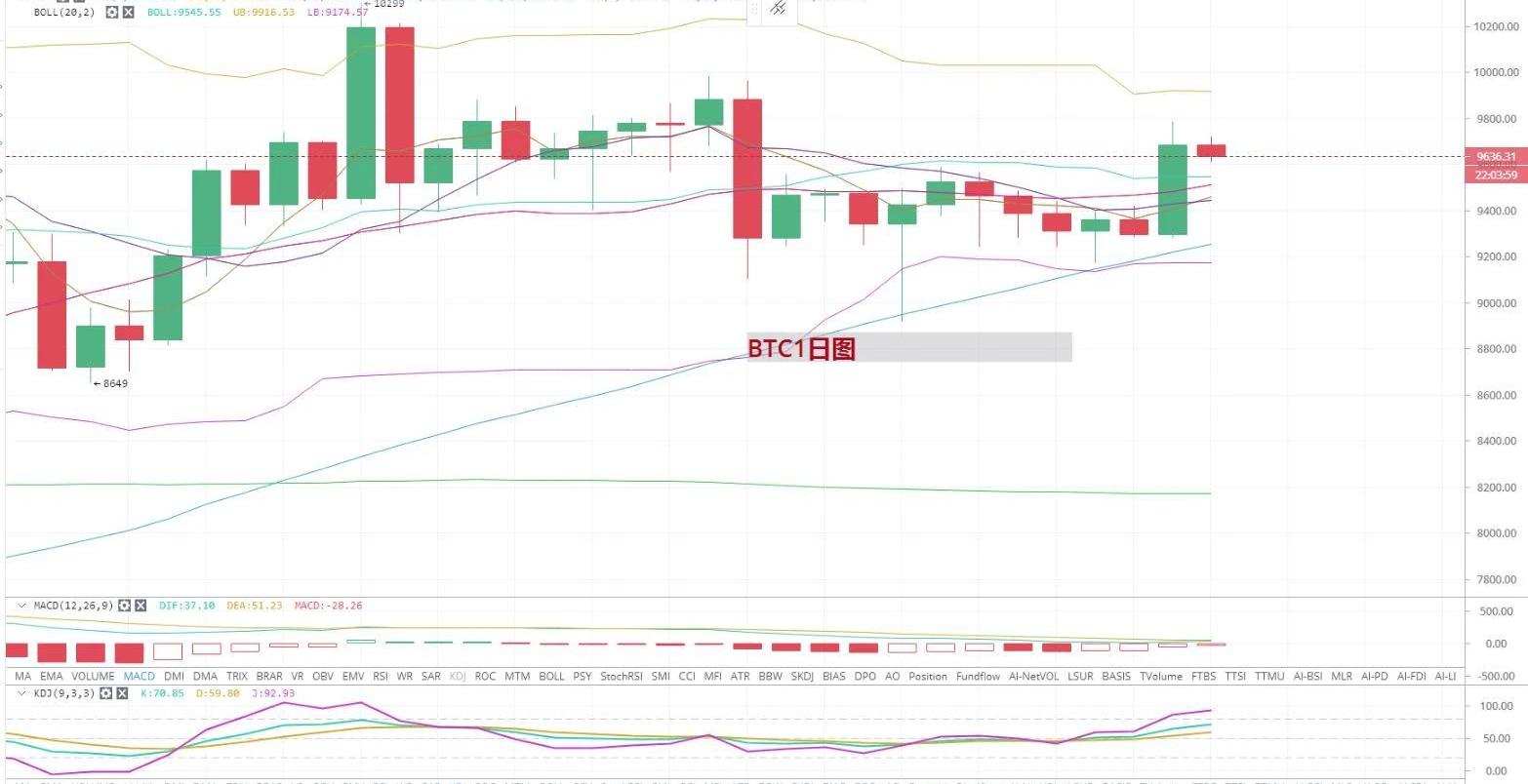 BTC至昨日早间开始一直呈震荡上行的趋势在运行,晚盘时已逐步上行至9500附近,随后凌晨开始持续拉升,最高触及9785一线后开始出现回落,目前位于9650一线调整,昨日晚间也是在9500附近提示过大家,上行趋势仍旧在,晚间操作上以多为主,不要盲目做空,事实行情走向亦如此。