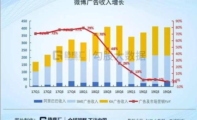 2019年的最后一个季度,微博广告收入4.05亿美元,同比下降-3%。这是微博上市以来第一个季度出现广告收入出现倒退的情况。总所周知,去年整个广告行业十分低迷,所以很多人将微博的增长放缓归咎于宏观经济的不景气,特别是中小企业广告。