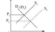 11.图示中D为需求曲线,S为供给曲线。如果不考虑其他因素,短期内,下列经济现象与图示描述相符合的是