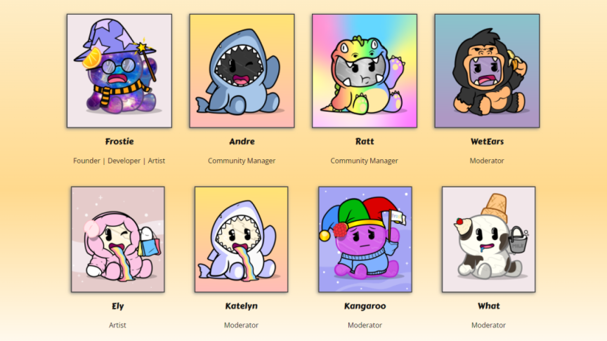 Frosties( 冰冰熊 ) 于 2022 年 1 月 7 日推出,是一个以冰淇淋为主题,包含 8888 个 NFT 的合集。Forsties 极力推销自己,标榜自己是一个「酷、美味和独一无二」的项目。 创始人 Ethan Nguyen(被称为 Frostie)和 Andre Llacuna(被称为 heyandre),已经在 Discord 上建立了一个相当大的社区,并承诺为收藏者提供商品、抽奖和确保项目长期发展的基金。