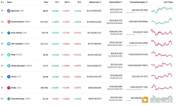 24小时NFT交易量、交易量前十项目 数据来源:Coinmarketcap