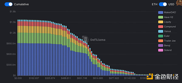 DeFi 中的 ETH 清算水平——来源:DeFi Llama