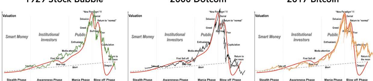 如果我们回看之前的泡沫时间,包括2017年的比特币,我们可以看到这个框架是有一些道理的。