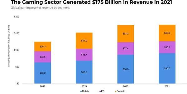 要想对全球游戏市场进行评估,我们就需要了解过去两年游戏行业的情况。2020年,由于新冠病大流行病引起的居家隔离对游戏行业起到了强有力的催化作用。那些已经是游戏玩家的人发现自己有更多的时间来玩他们最喜欢的游戏。同时,不玩游戏的人发现自己有时间去尝试新的爱好。因此,全球游戏收入在2020年增长了15%。移动、个人电脑和主机游戏的收入都有所增长,尤其是移动游戏,同比增长了26%。