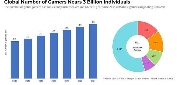 同时,全球游戏玩家总数预计将达到30亿大关,其中55%来自亚太地区。用户群体不断增加的主要驱动力仍然是不断扩大的互联网人口,更好的网络基础设施,以及更容易获得的智能手机。