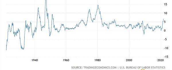 全美基于CPI指数的历史通货膨胀率