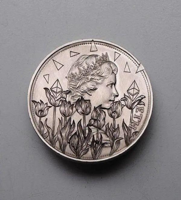 举个例子:艺术家JohnnyDowell,又被称为是KingNerd——用JakeElias的话说——他选择的媒介是雕刻硬币,这其实是非常适合与加密货币相融合的。JakeElias解释道:「JohnnyDowell总是使用旧硬币来进行创作;因为他曾表示这些硬币甚至连咖啡都买不了,所以我打算另辟蹊径。」