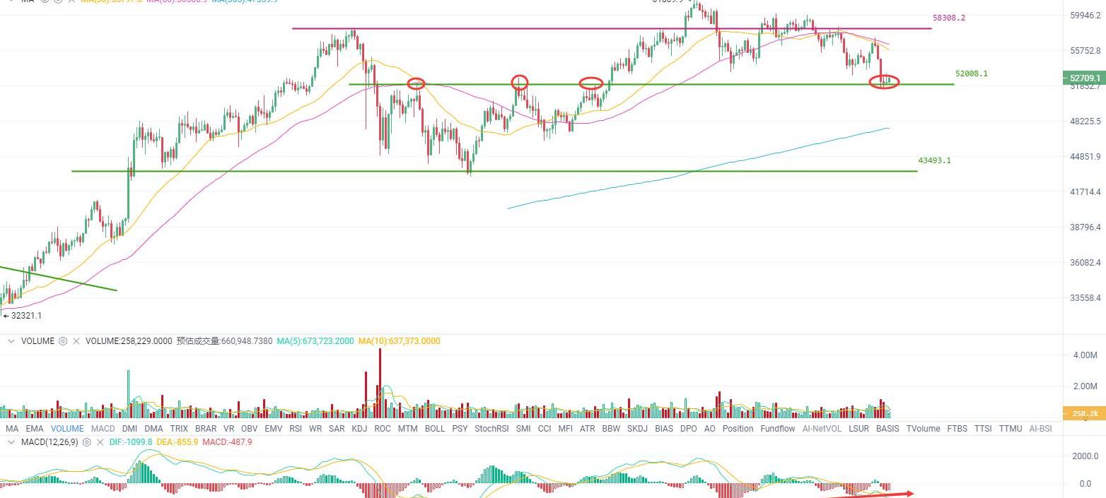 二级市场:昨天比特币先是在53500一线出现止跌回升,最高一度反弹至57200附近,但由于代表高估值成长股的纳斯达克指数于23:30左右逐步向下,并最终收跌2%,从而对加密资产市场情绪造成打击,比特币带头下跌,再创3月14日调整以来的新低。目前币价在52000附近出现止跌迹象,该价位曾经是2月25日和3月3日的反弹行情高点。