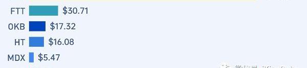 最近45天价格表现中,HT涨幅177%,BNB涨幅最高:442%,MDX涨幅最低:65.51%,不过MDX作为去中心化交易所,刚刚上线45天。