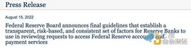 美联储周一宣布,已敲定关于向新型金融机构提供主存款账户(MasterAccount)准入的新指导方针。MasterAccount是美国金融链中的关键环节.