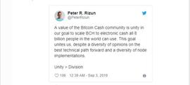 比特币无限首席科学家PeterR.Rizun今天发表推特,他说:“比特币现金社区的价值是统一的,我们的目标是将BCH扩展到全世界80亿人都可以使用的电子现金.